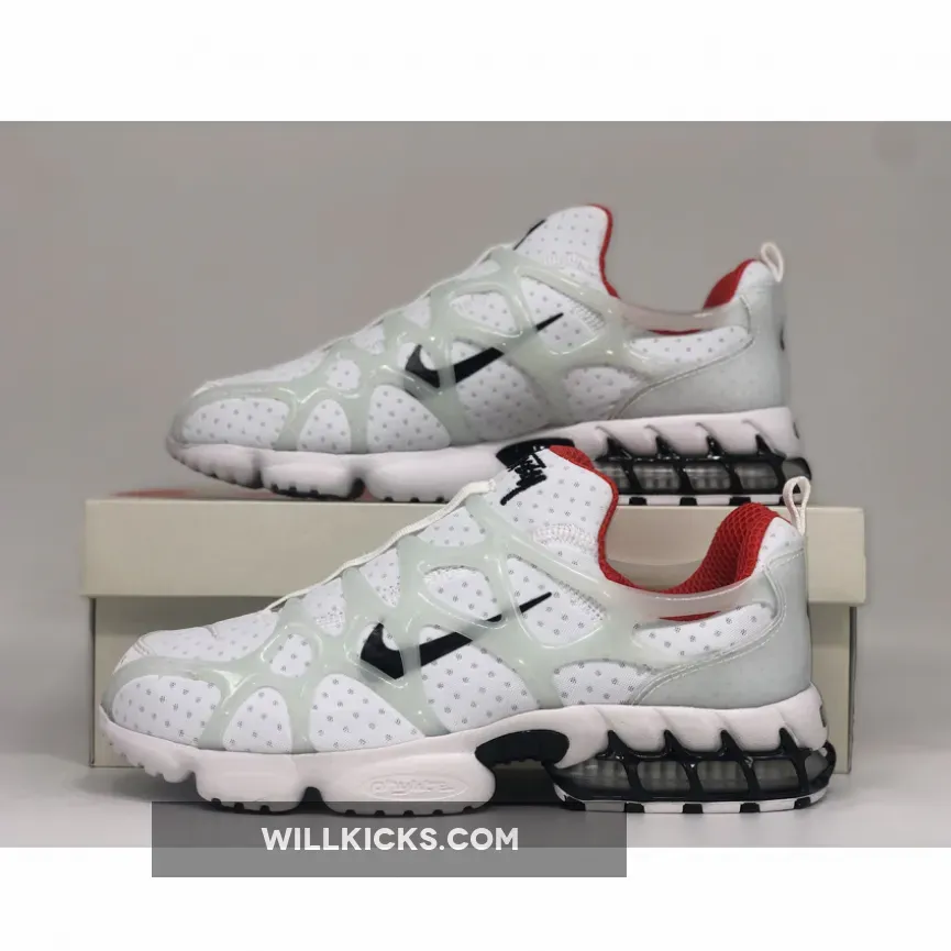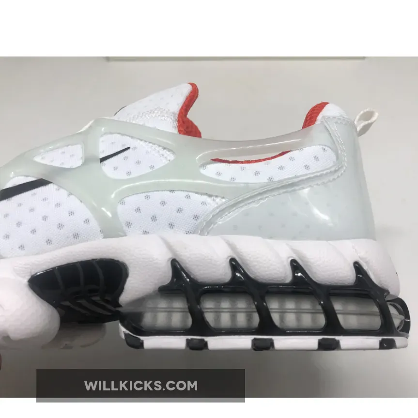 In addition, the midsole underfoot is also a crisp white shade to match the whole sneaker’s theme. It’s bulky texture, and the caged heel encasing the cushion tech is precisely our favourite feature on this striking silo. The extra height at the heels offers a smooth response and super speed.
