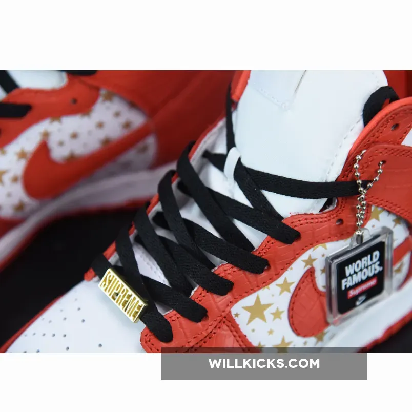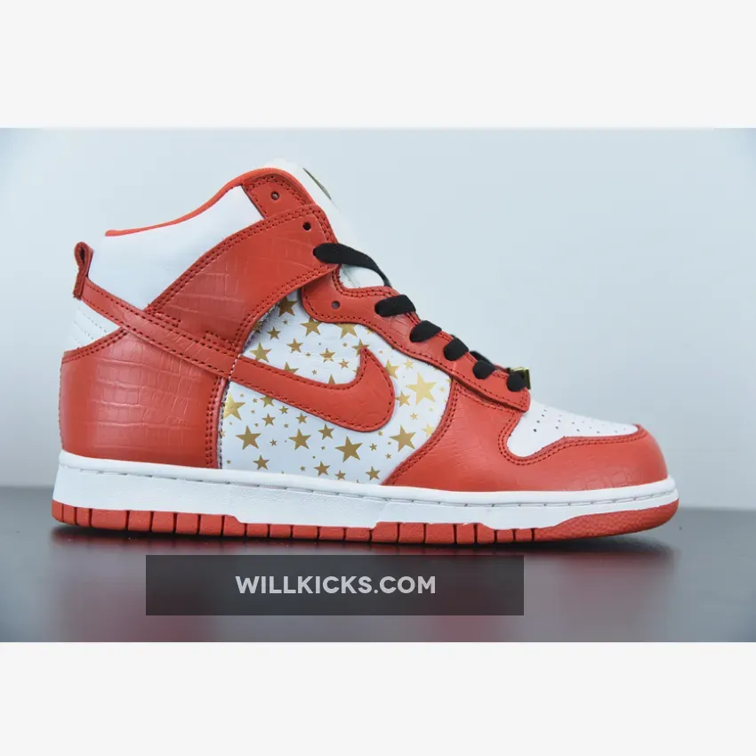red supreme dunks #supreme star dunk #red and white supreme #supreme high tops #nike sb dunk high pro qs #red supreme