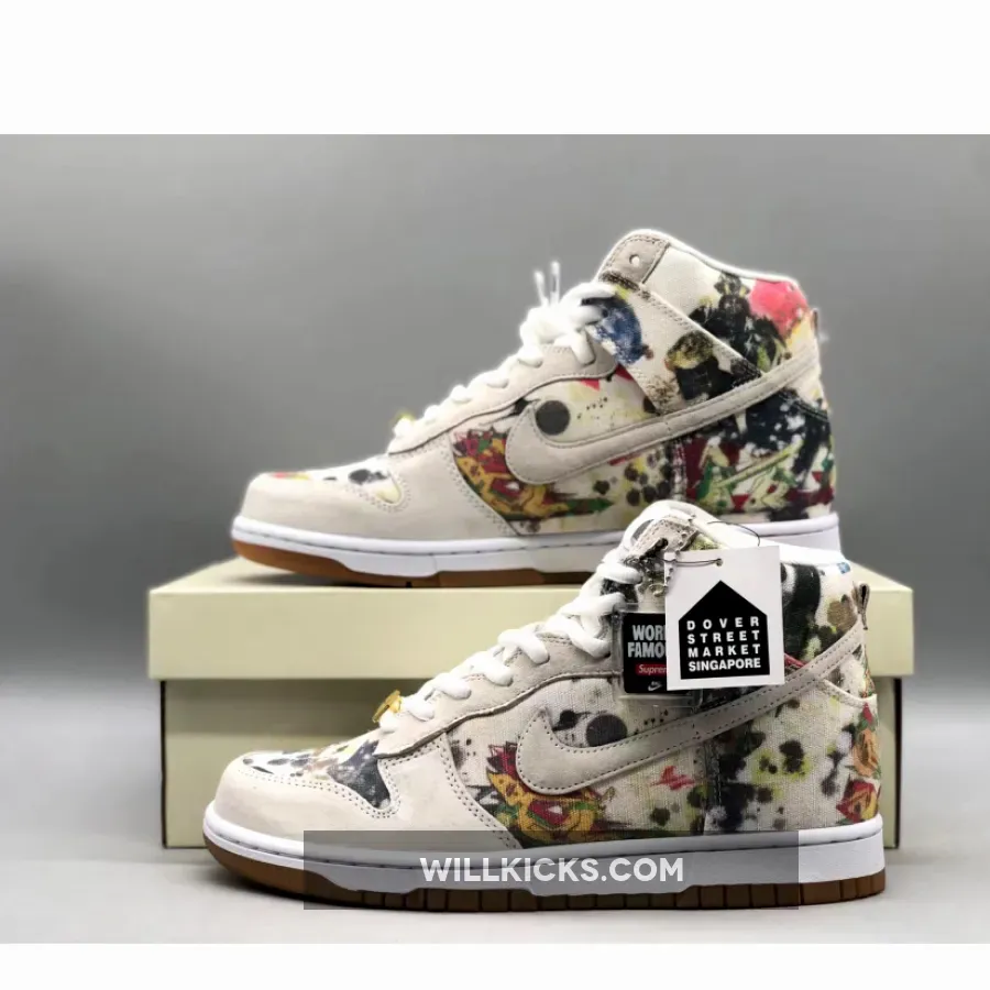 The Supreme x Nike SB Dunk High Rammellzee is a collaboration between the two powerhouses that showcases the work of New York visual artist, Rammellzee.