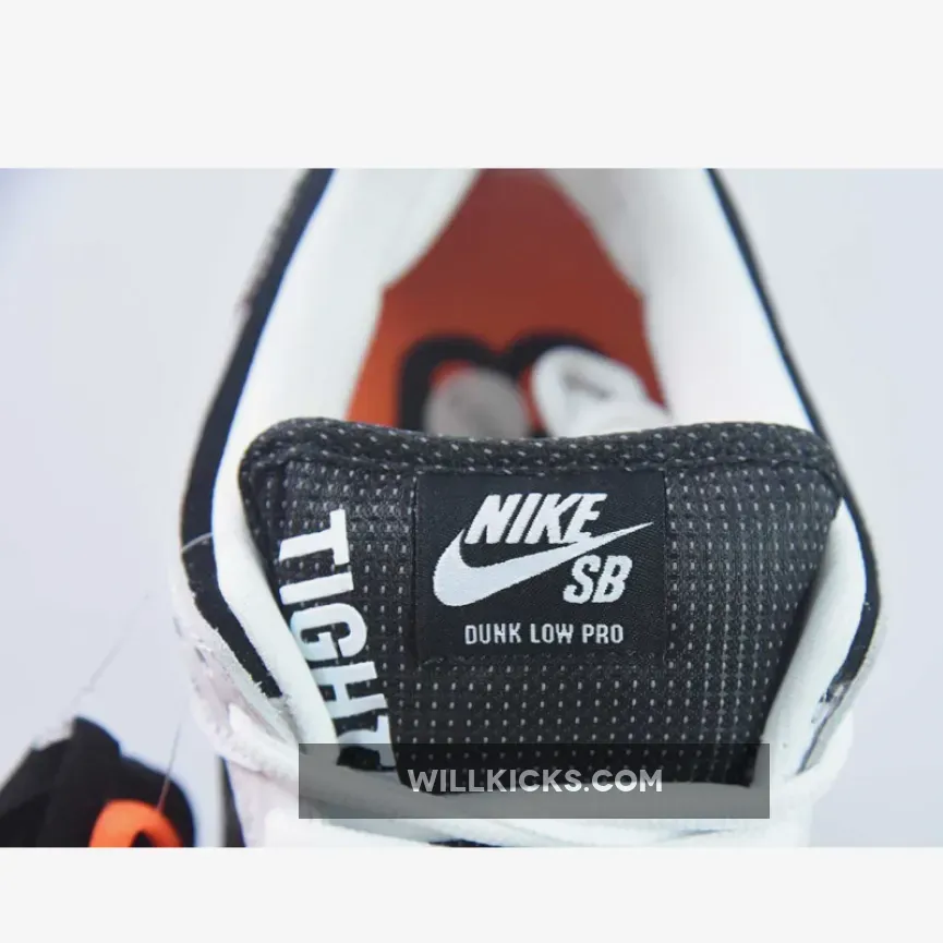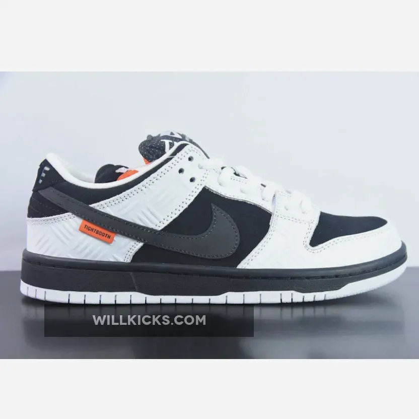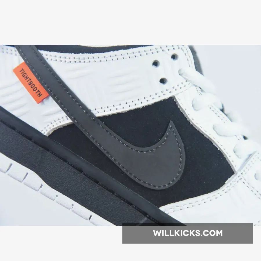 A reflective black Swoosh appears at the lateral, with the medial likely carrying the same style. The padded tongue sees a dotted arrangement joined by TIGHTBOOTH branding next to the typical Nike SB tongue tag. an orange sockliner with TIGHTBOOTH branding matches the small lateral tag below the Swoosh.