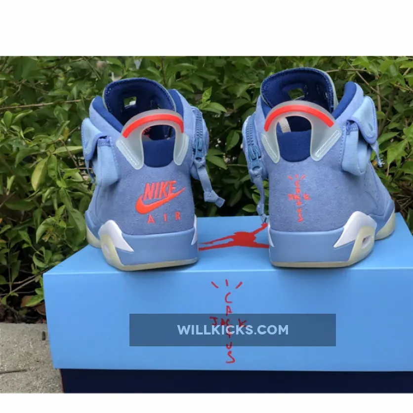 Akin to his Air Jordan 4 joint-effort from June 2018, Scott’s next sneaker with Team Jumpman draws its “University Blue/Varsity Red/Black” colorway from a former NFL team (now known as the Tennessee Titans). Premium suede construction covers the majority of the model’s upper, and indulges in an eye-catching light blue. The tongue and utilitarian pouch on the lateral side boast a darker shade of the titular tone, but don’t detract from the shoe’s overall aesthetic. As has become common of La Flame’s Air Jordan collaborations, branding – which includes “NIKE AIR” at the heel – across the retro delivers stark “Varsity Red” contrast presented in fluorescent, “Infrared”-fashion. Cactus Jack iconography makes its way onto the medial midsole, and while not depicted in early leaked images, likely does so on the semi-translucent outsole, too.